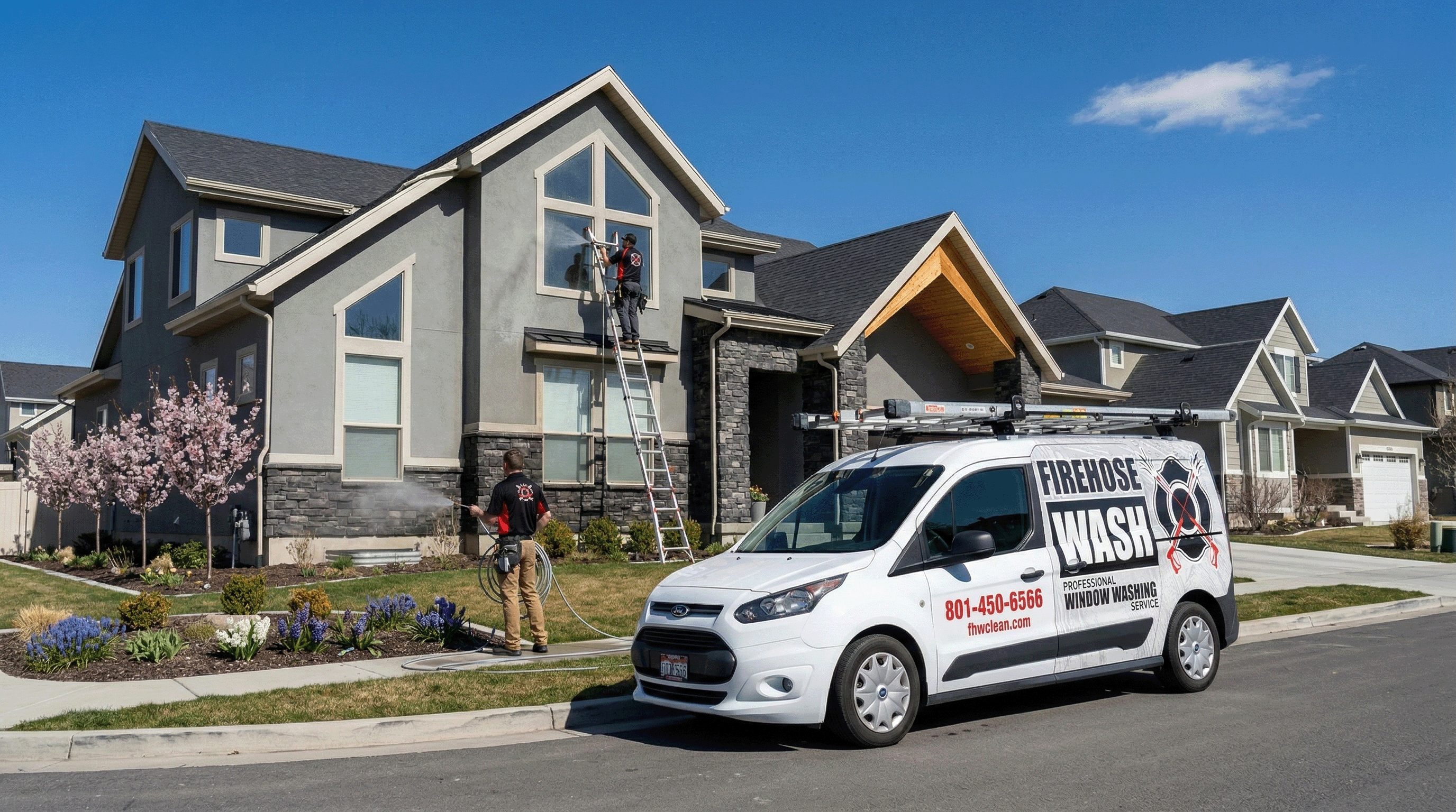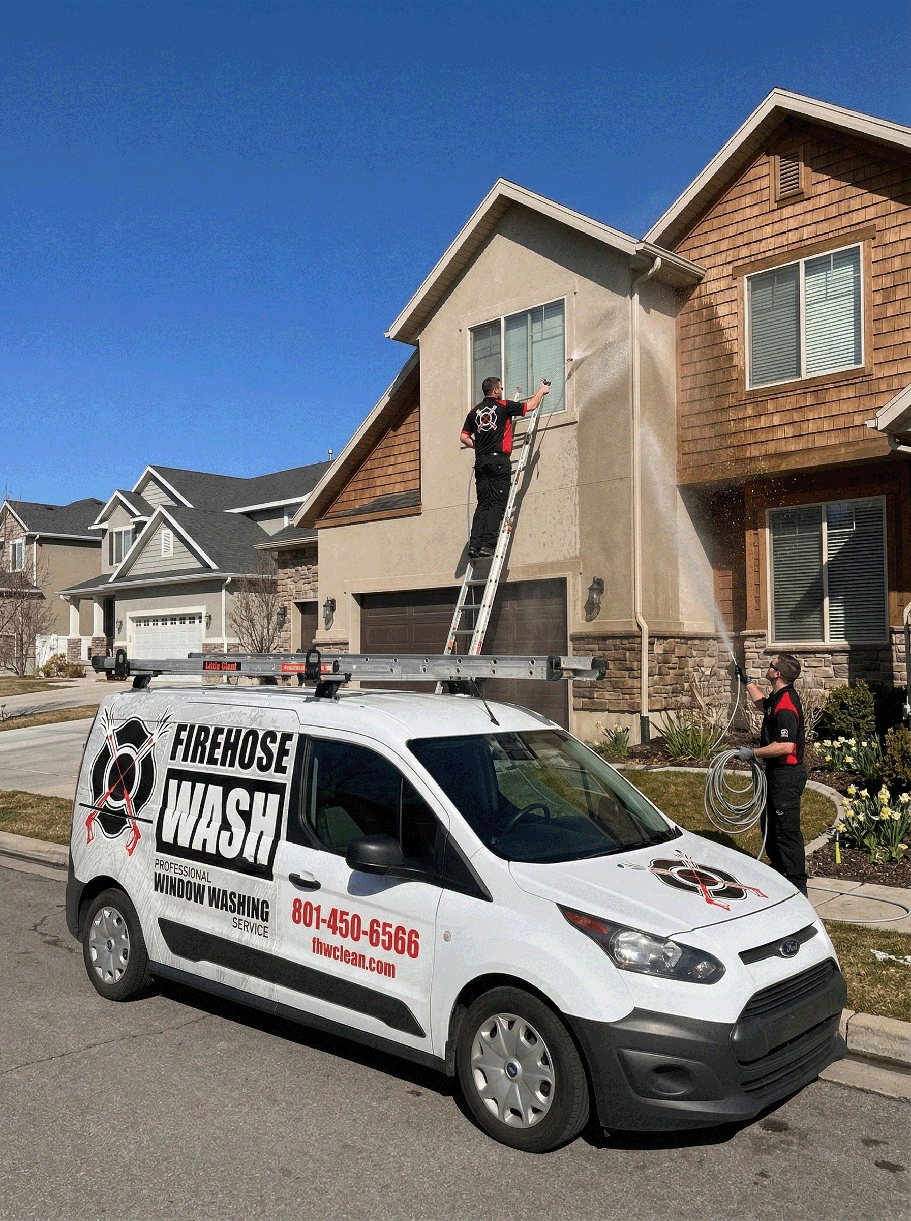 Firehose Wash provides professional home exterior soft washing services in Salt Lake City. Our specialized low-pressure cleaning method safely restores the beauty of your home's exterior without the risk of damage caused by traditional high-pressure washing.